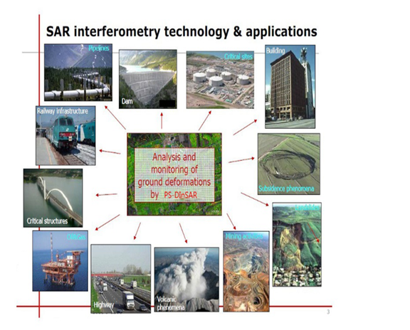 2)、从SAR数据保障上,国外两代SAR卫星数据已经初步培养了我国InSAR研究和用户群。目前,我国也在积极筹划研制自己的SAR卫星,特别是InSAR应用目标的配置,将会促进InSAR技术的整体进步。我国不久将发射的“海洋三号”卫星,将具备海陆观测快速重访、干涉重访能力,能够进行1:5万-1:1万全球DEM数据获取、毫米级陆表形变监测。结合“海洋二号”动力环境卫星可实现厘米级海面高度观测,实现对海上目标、重要海洋灾害、地面沉降、全球变化信息的全天候全天时观测,满足海洋目标监测、陆地资源监测等多种需求。3)、新一代的雷达卫星具有3米乃至1米的分辨率,且具有短重访周期,利用这些高分辨率影像能获得更为细致的形变信息,使得特定目标(例如单个建筑物 、地下工程、大型建筑施工、二氧化碳地下存储、水库大坝、大型管线、桥梁、高速公路、铁路等)的定向监测成为可能,实现工程级应用。